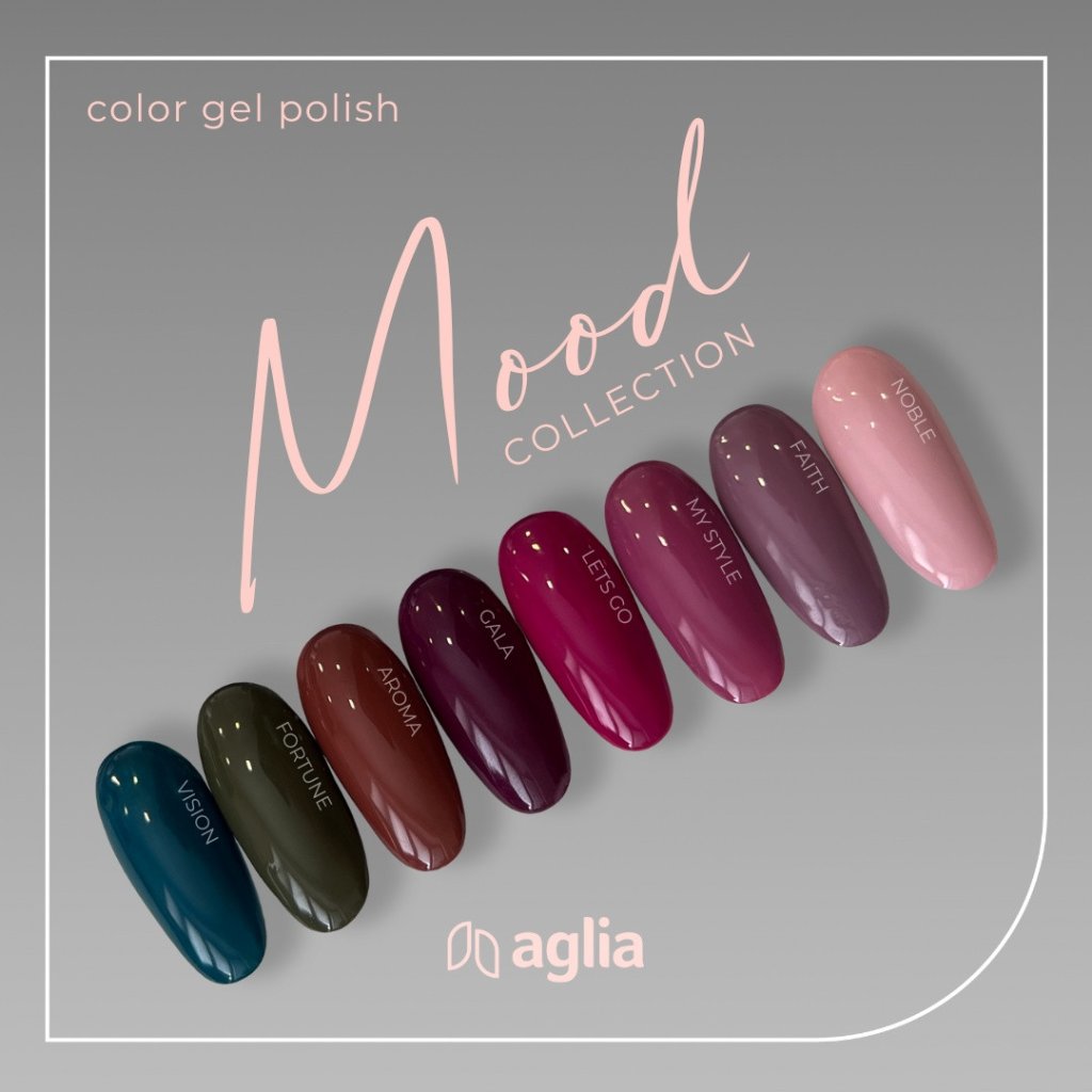 FARBIGE GEL-LACKE AGLIA zeichnen sich durch Premiumqualität, maximale Pigmentierung und perfekte selbstnivellierende Eigenschaften aus. Sie sind ideal für die Anwendung auf verstärkten Nägeln mit der Basis GUMMY BASE sowie auf modellierten Nägeln, die mit jedem Aufbaugel oder Polygel AGLIA erstellt wurden.