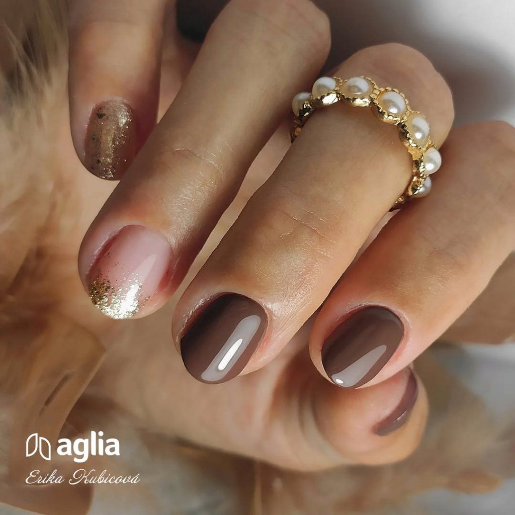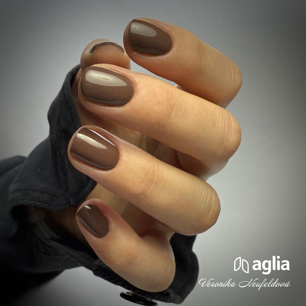 Dunkelbraunes UV Farbgel für Nägel.