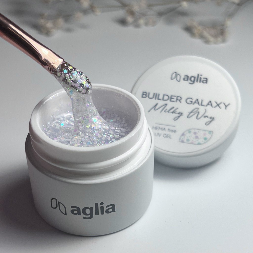 BUILDER GALAXY ist ein luxuriöses UV Aufbaugel mit einem wunderschönen Glitzereffekt, der den Nägeln Tiefe und einen eleganten Glanz verleiht. Es besitzt eine thixotrope Konsistenz, was bedeutet, dass es in Ruhe dicker ist und sich während der Arbeit sanft verflüssigt – es läuft nicht, hält die Form und bietet maximale Kontrolle. Dank seiner Flexibilität ist es ideal für kurze und mittlere Längen. Der Glitzereffekt ermöglicht zudem den Einsatz als Designelement, indem das Gel in einer dünnen Schicht auf modellierten oder farbigen Nägeln aufgetragen wird.