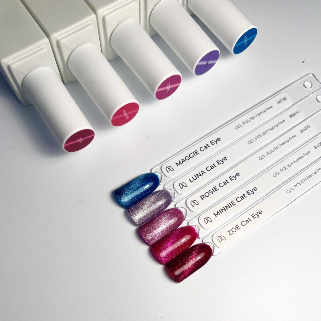CAT EYE GEL LACKE enthalten feine mikrometallische Partikel, die auf einen Magneten reagieren und faszinierende 3D-Effekte mit optischer Tiefe ermöglichen. Jede Bewegung des Magneten eröffnet Raum für Kreativität und ein originelles Nageldesign.
